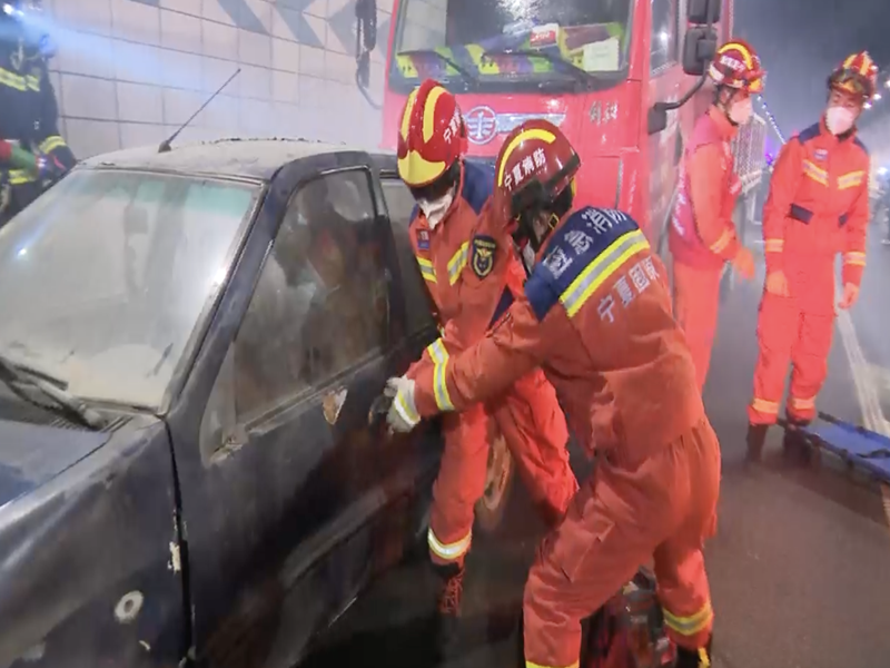 此次演練是以火情處置、人員疏散和應(yīng)急救援為主題的綜合性隧道突發(fā)事件應(yīng)急演練,旨在貫徹落實習(xí)近平總書記關(guān)于安全生產(chǎn)和應(yīng)急管理的重要指示批示精神,踐行“以人民為中心”的理念,全面提升應(yīng)急管理水平及隧道事故應(yīng)急處突能力。演練模擬了G22線青蘭高速六盤山特長隧道內(nèi)發(fā)生五車追尾、三人受傷交通突發(fā)事件的緊急救援和應(yīng)急處置。事故發(fā)生后,貨車司機第一時間通過隧道內(nèi)緊急報警電話向隧道監(jiān)控中心報警,寧夏高速公路日常養(yǎng)護(hù)項目部收到隧道監(jiān)控中心指示,立即啟動隧道突發(fā)事件應(yīng)急預(yù)案,協(xié)助封閉交通,實施救援,清理事故現(xiàn)場,與其他相關(guān)單位緊密配合、快速處置,以最短時間恢復(fù)了交通。