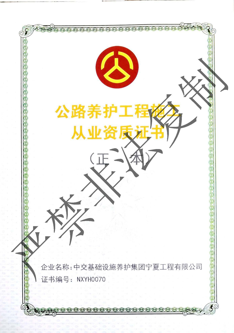 公路養(yǎng)護工程施工從業(yè)資質(zhì)證書